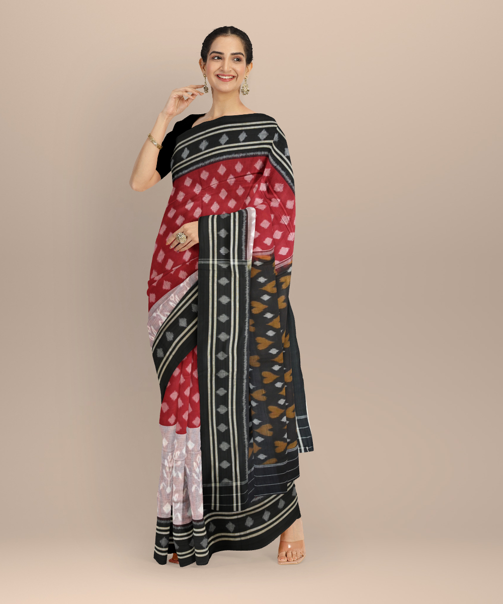 Multicolor black cotton nuapatna handloom saree